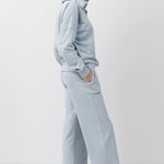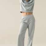 • The pants have a wide-leg silhouette, offering a relaxed yet flattering drape