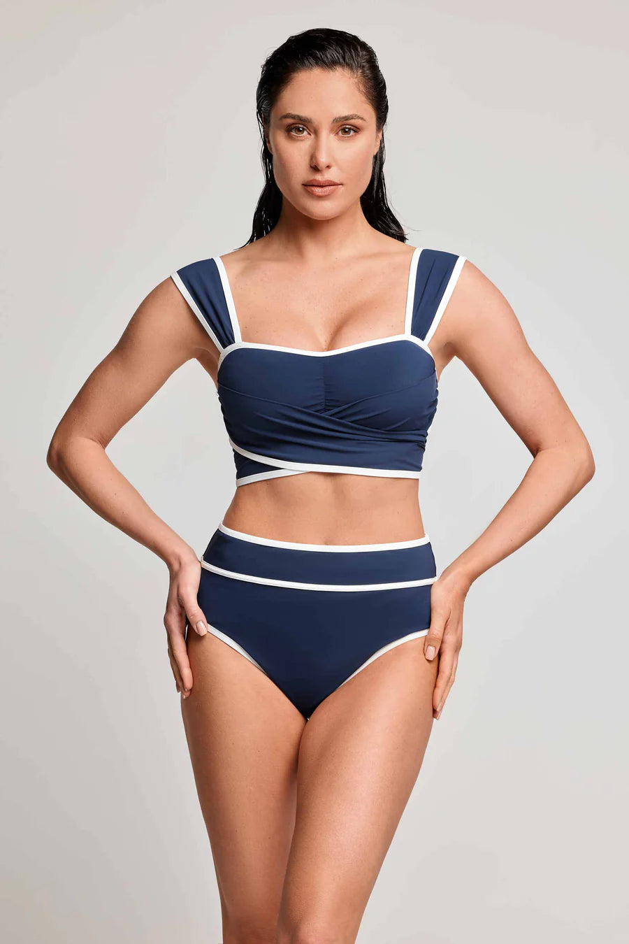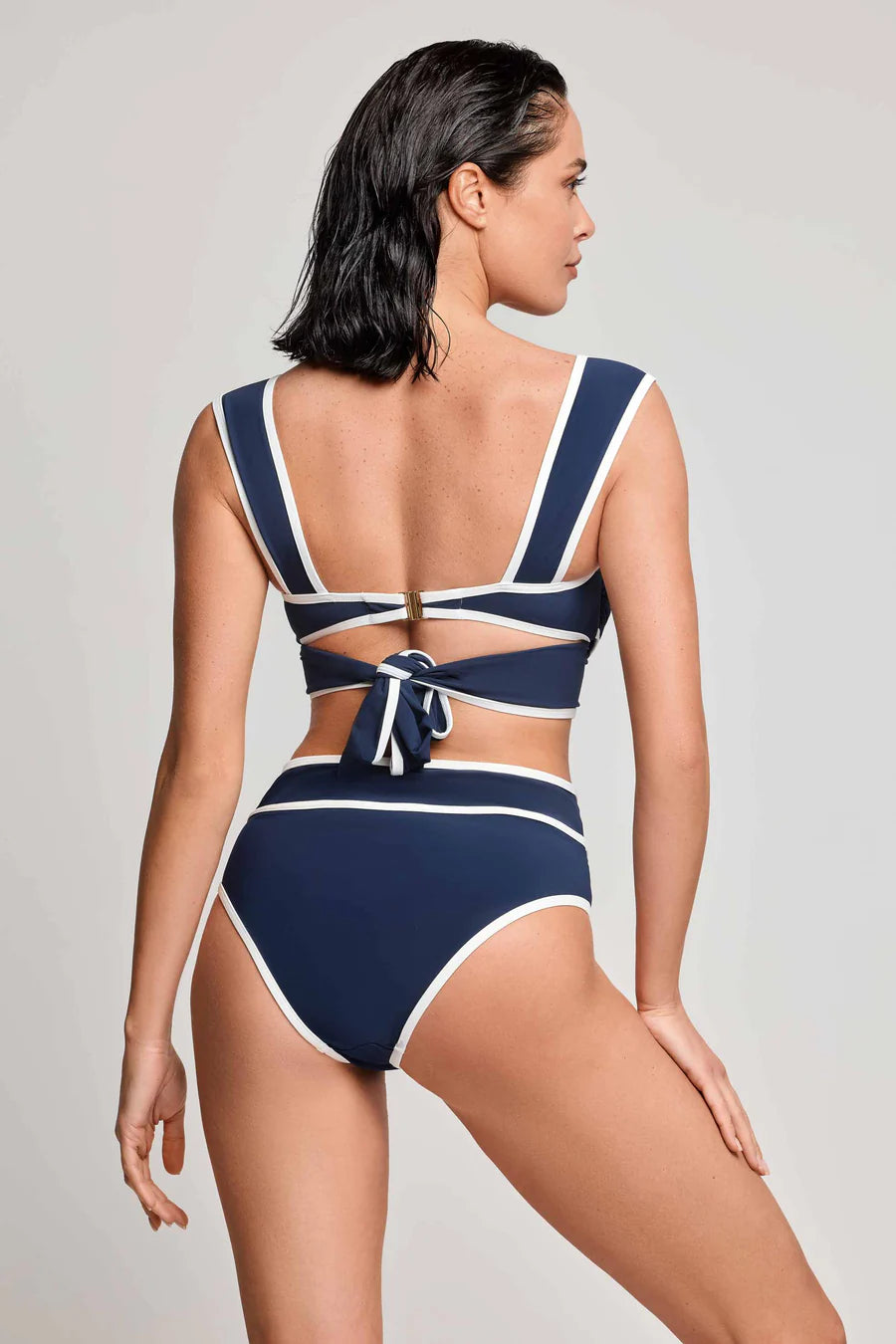 • High-waisted briefs create a flattering silhouette