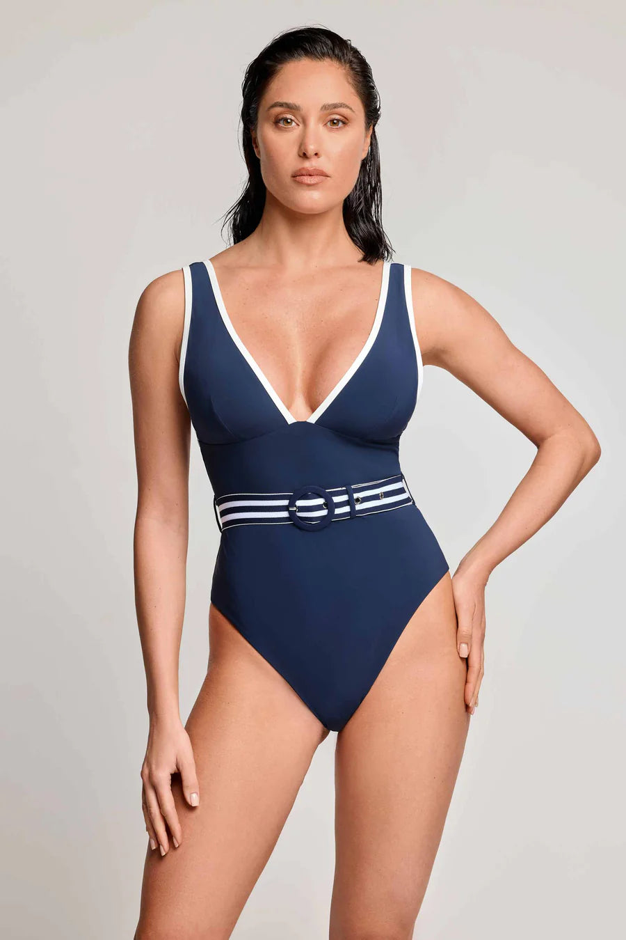 • Elegant swimsuit with a waist belt for a sophisticated look