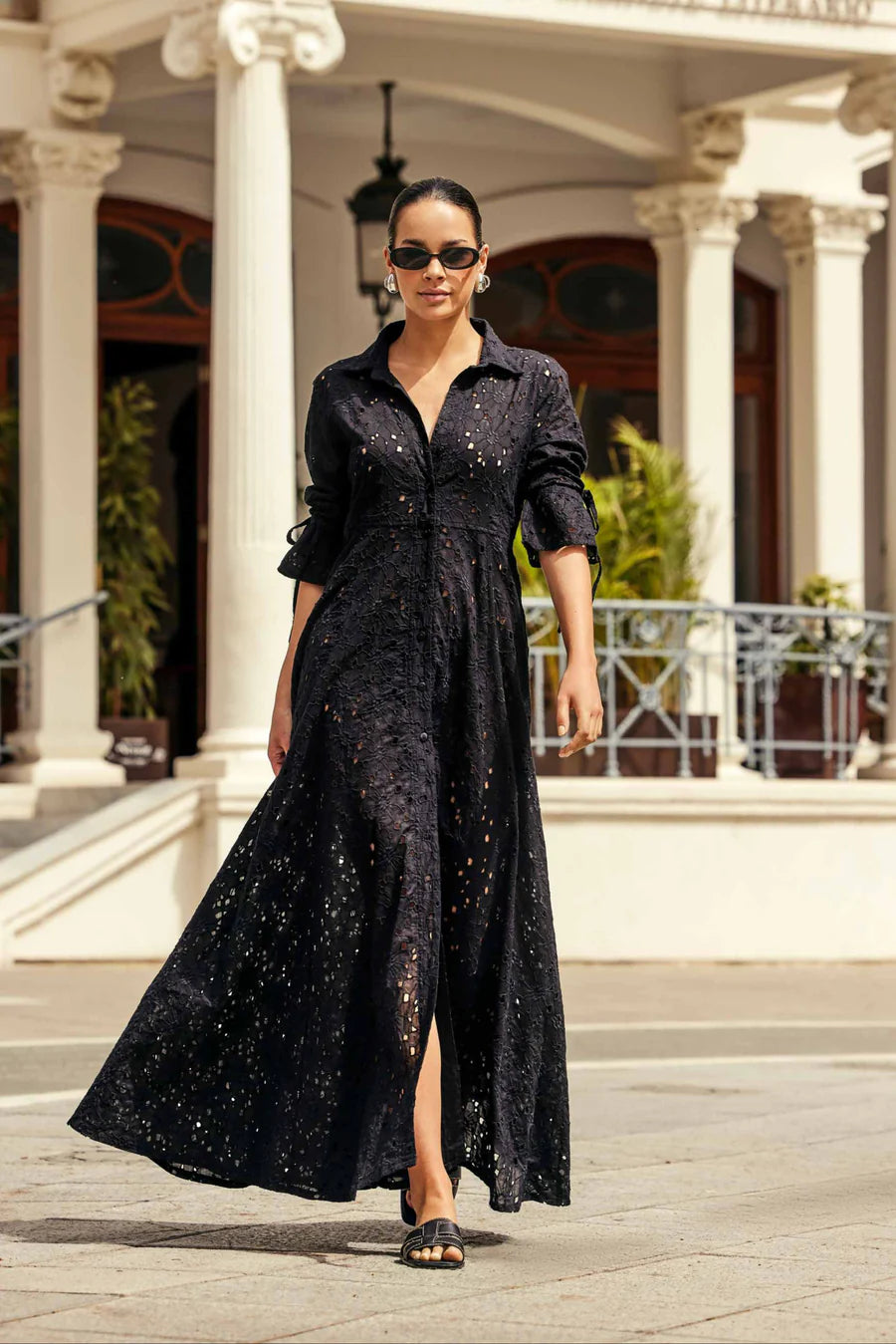 • This stunning long lace shirt style dress is made of fine pure cotton