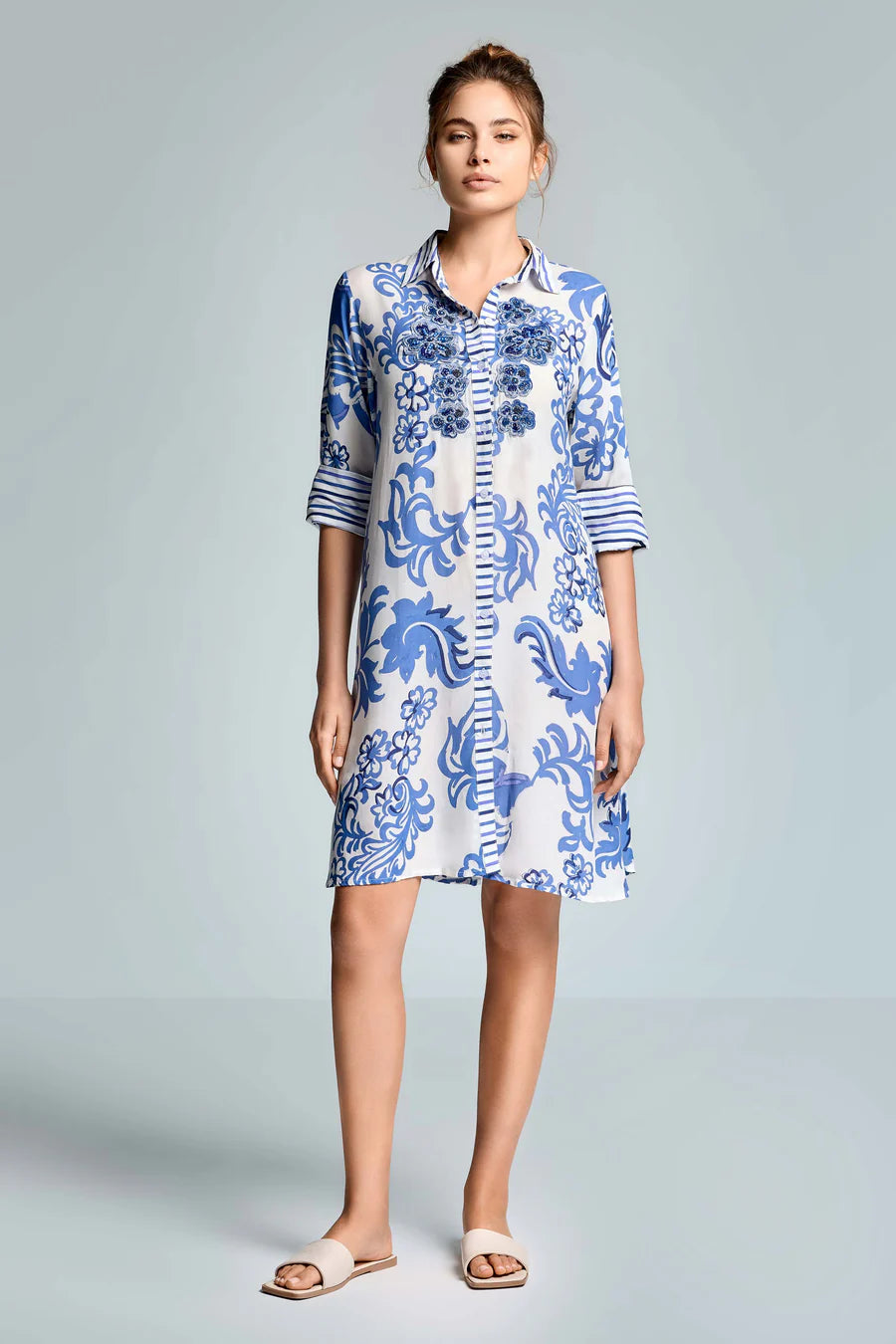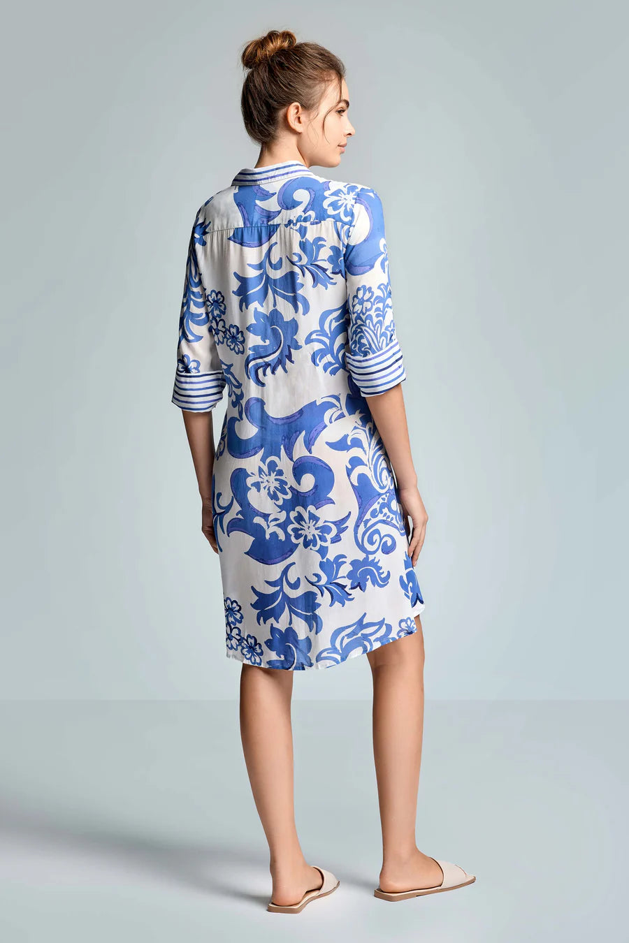 • Striking white and blue pattern adds visual interest with timeless appeal