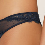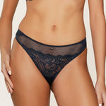 • This beautiful lace thong is semi-transparent at the front and features a delicate glitter detail in the lace trim at the back