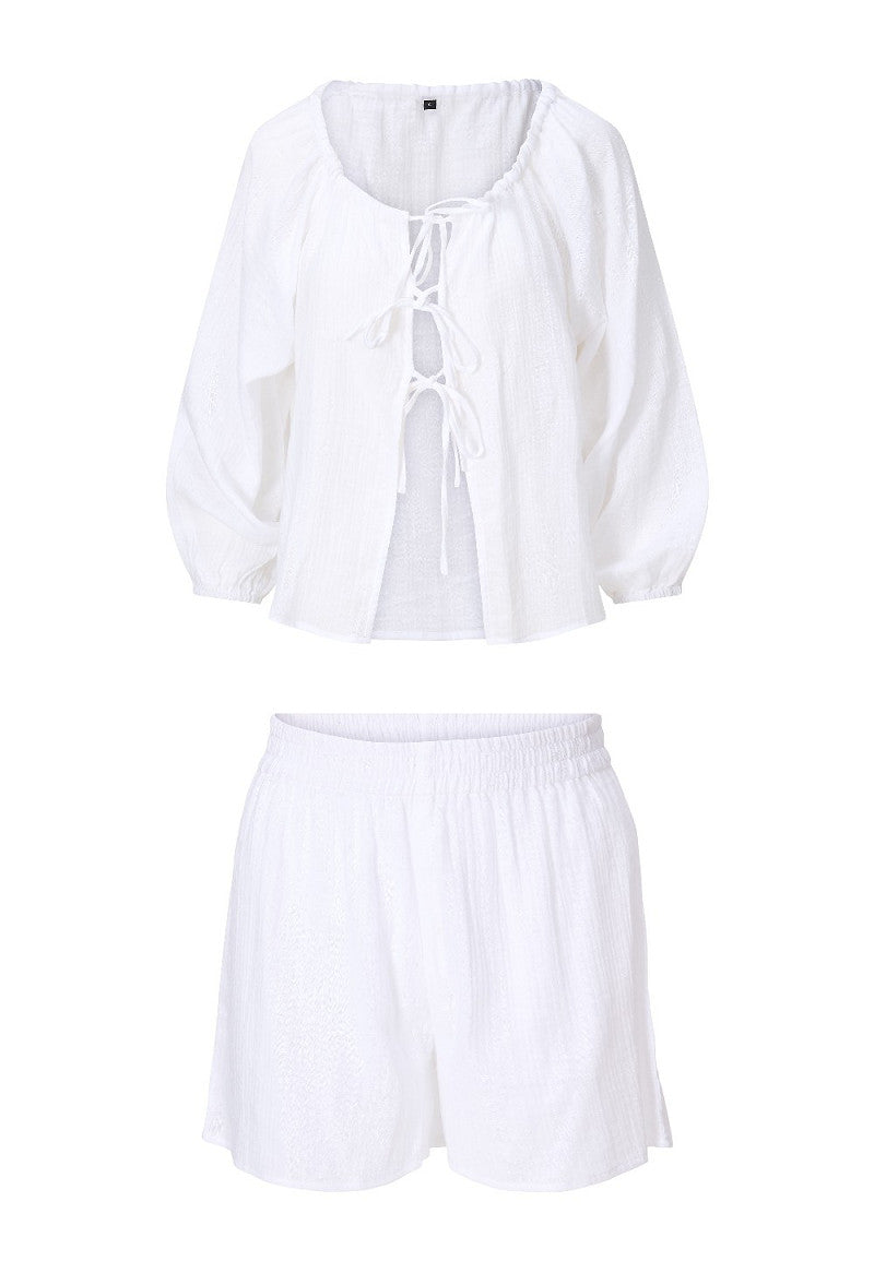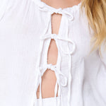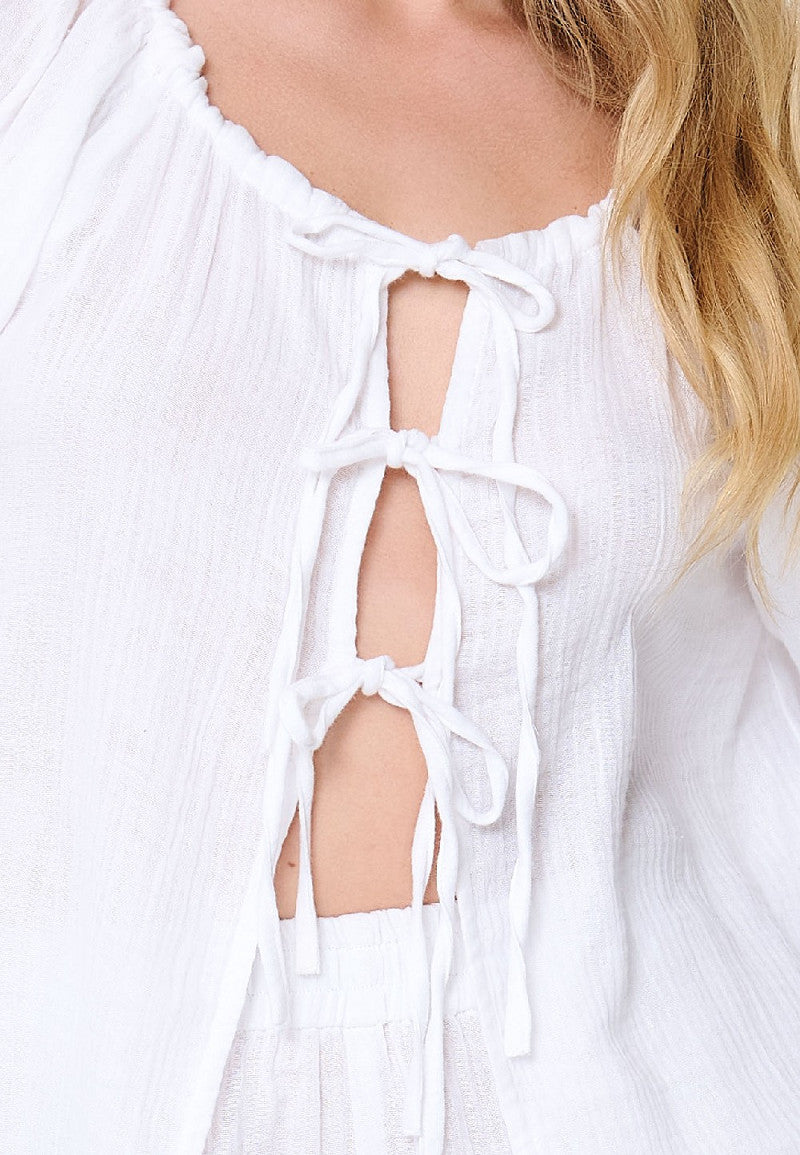 • The long top has tie details at the front