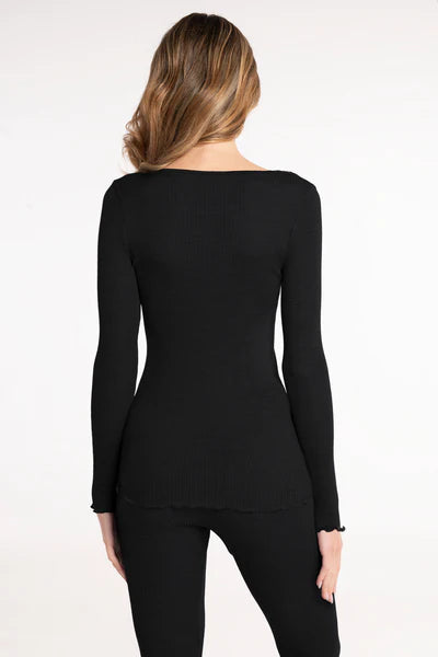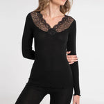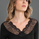 Oscalito Long Sleeved V-Neck Top with Leavers Lace Insert