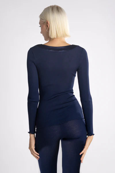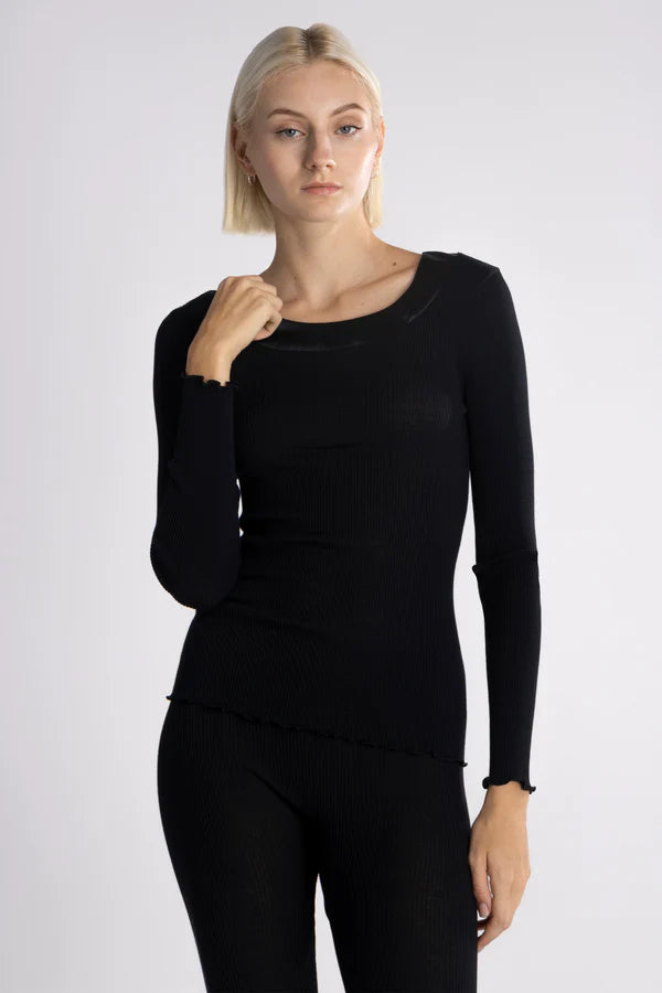 Oscalito Wide Scoop Neck Long Sleeved Top in Cast-Iron