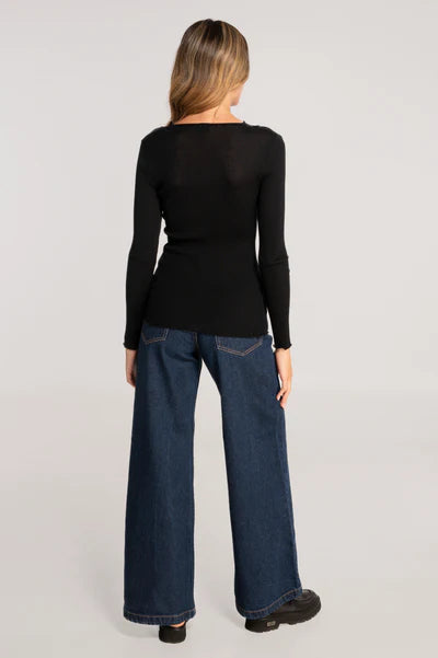 Oscalito Long Sleeved Top with Floral Tulle & Lace Motif