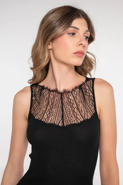 Oscalito Silk and Wool Tank Top with Lace Panel