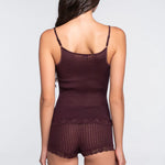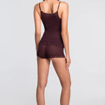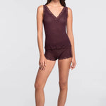 It features adjustable shoulder straps and a graceful V neckline refined with a band of French Leavers lace, certified and numbered as true “Dentelle de Calais®”