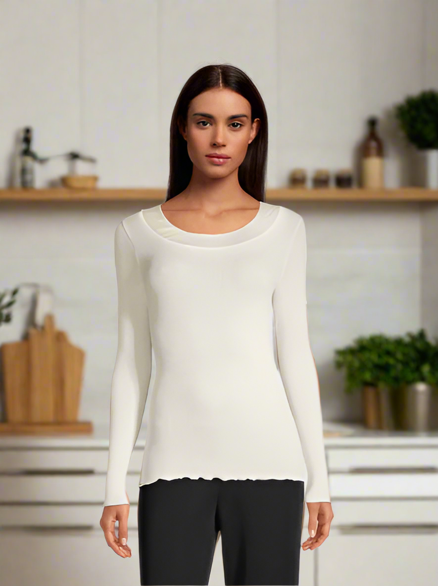Oscalito Wide Scoop Neck Long Sleeved Top in Silver