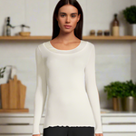 • Fluted edging on sleeve ends and hemline